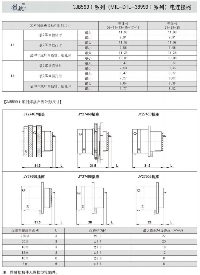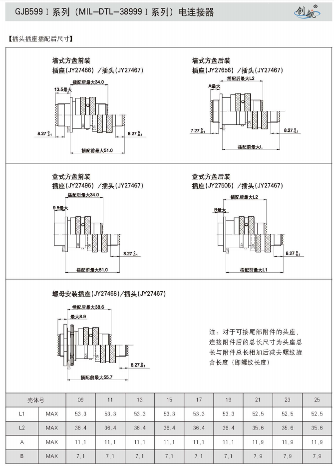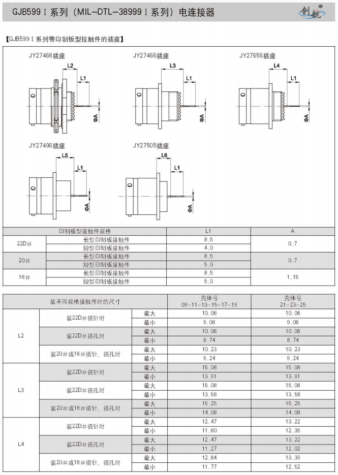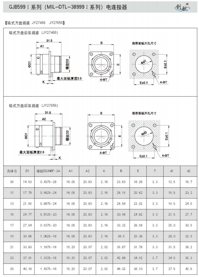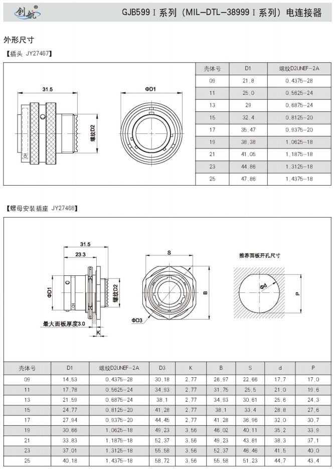 符合GJB599A(MIL-DTL-38999K)Ⅰ系列