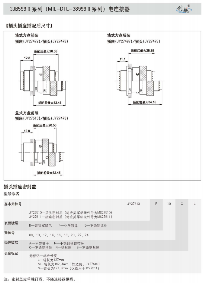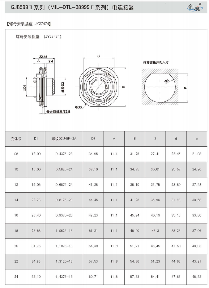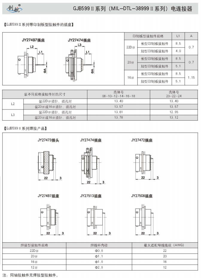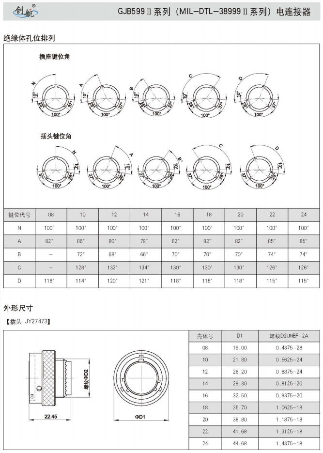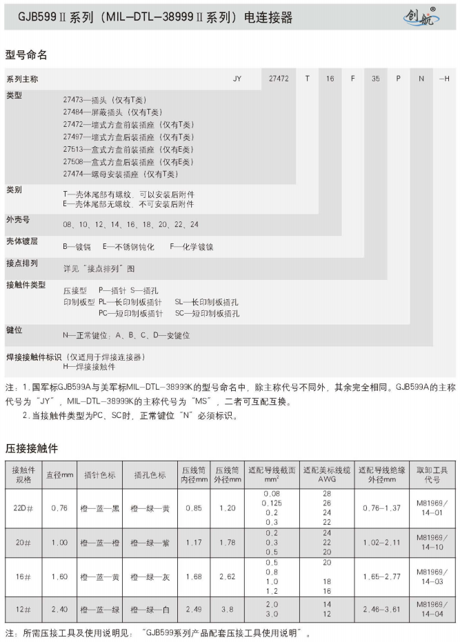 符合GJB599A(MIL-DTL-38999K)Ⅱ系列